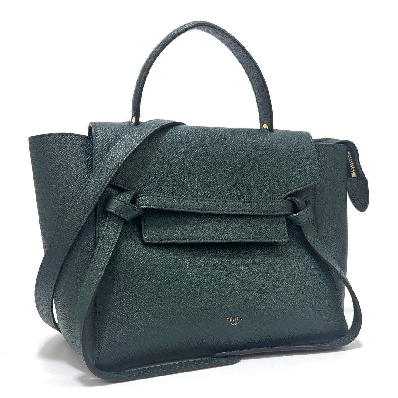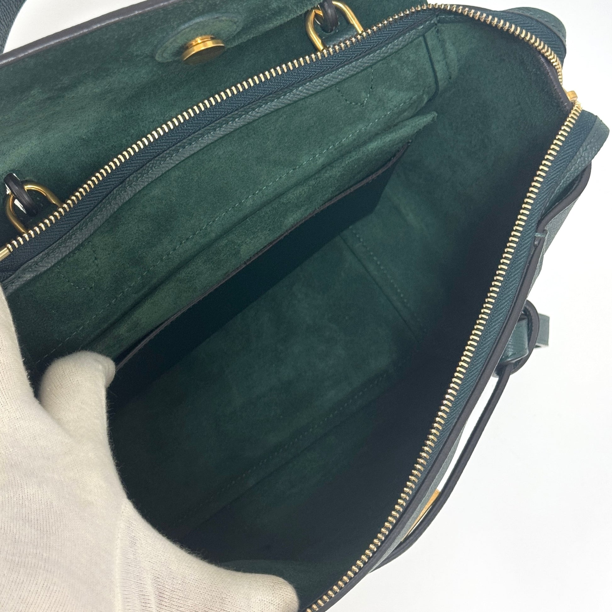 セリーヌ ベルトバッグマイクロ レザー 2WAYハンドバッグ グリーン B2657