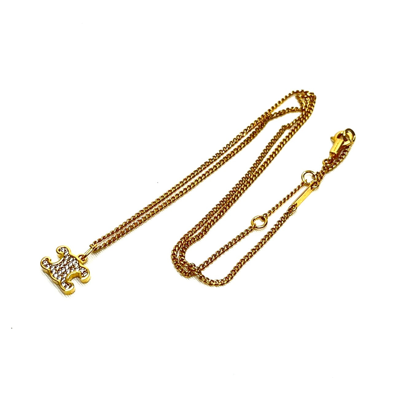 B2313 セリーヌ トリオンフ ラインストーン ネックレス F-TT-2204 ゴールド