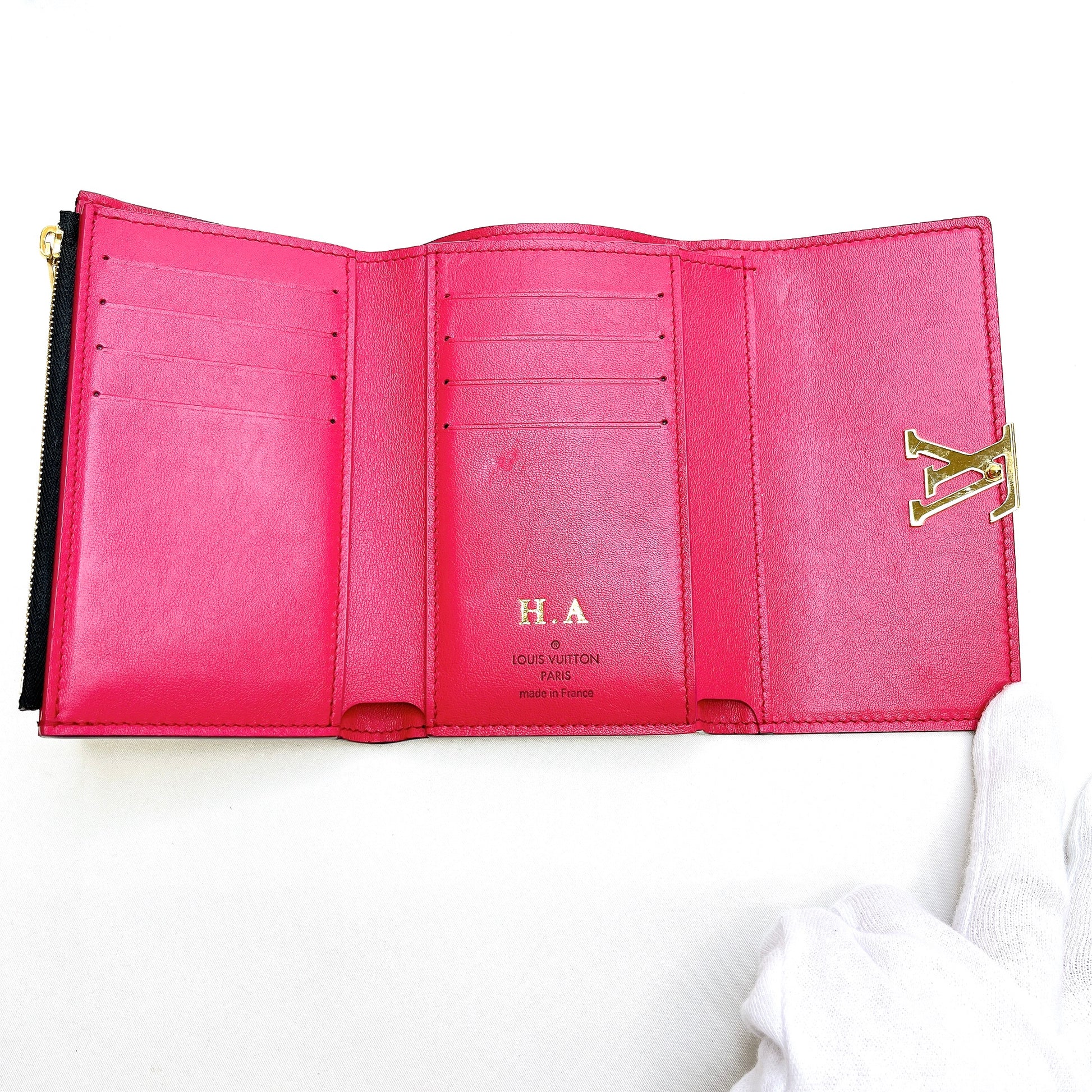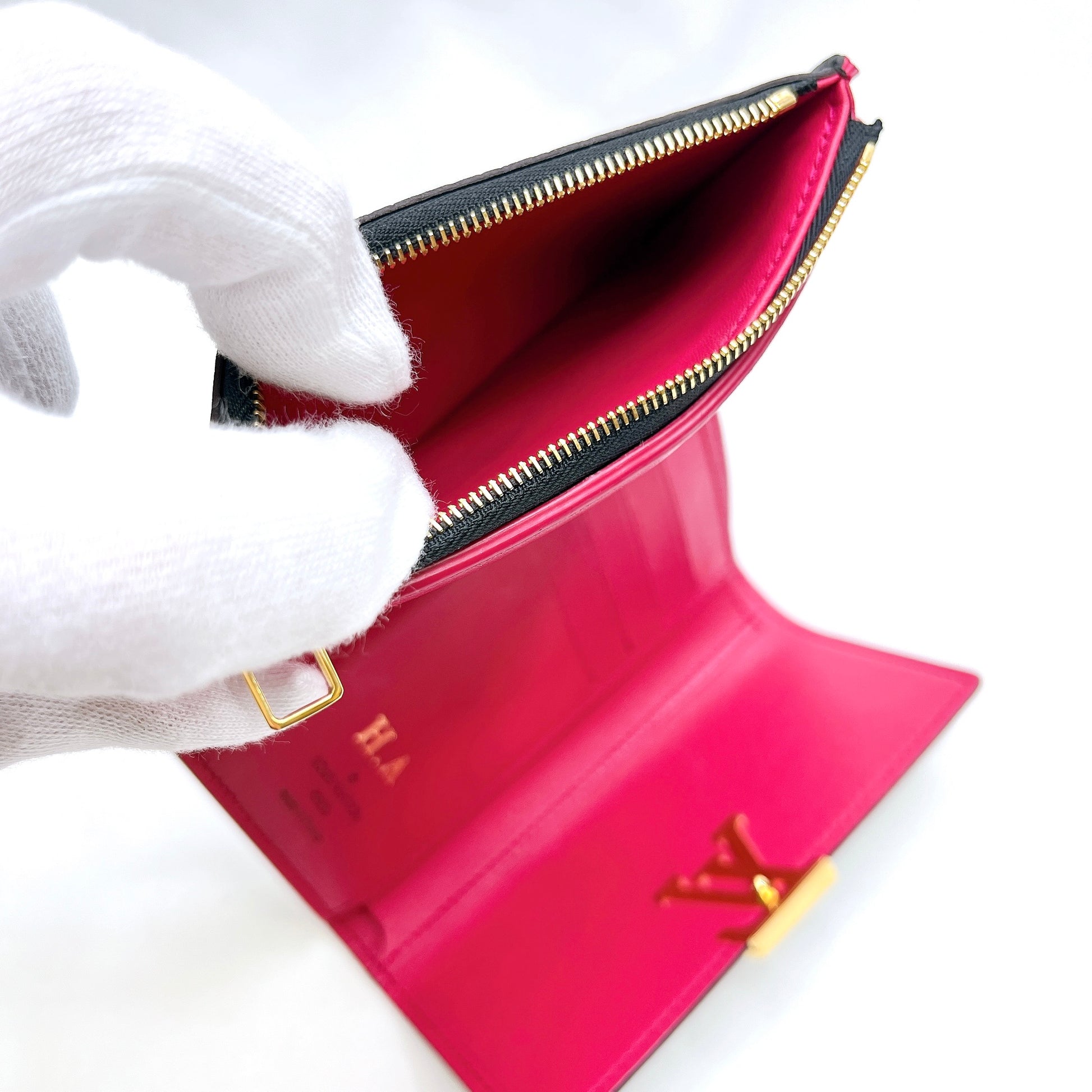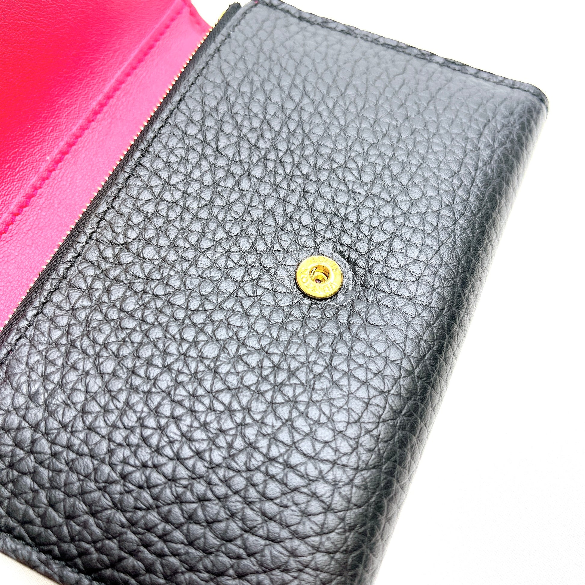 B2299 ルイヴィトン トリヨン ポルトフォイユカプシーヌコンパクト M62157 ノワール×ホットピンク コンパクトウォレット RFID