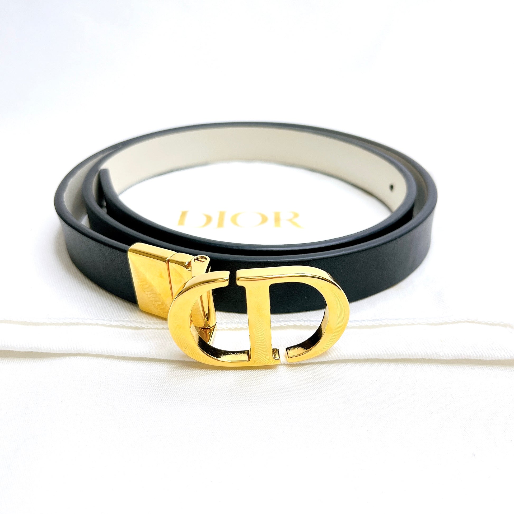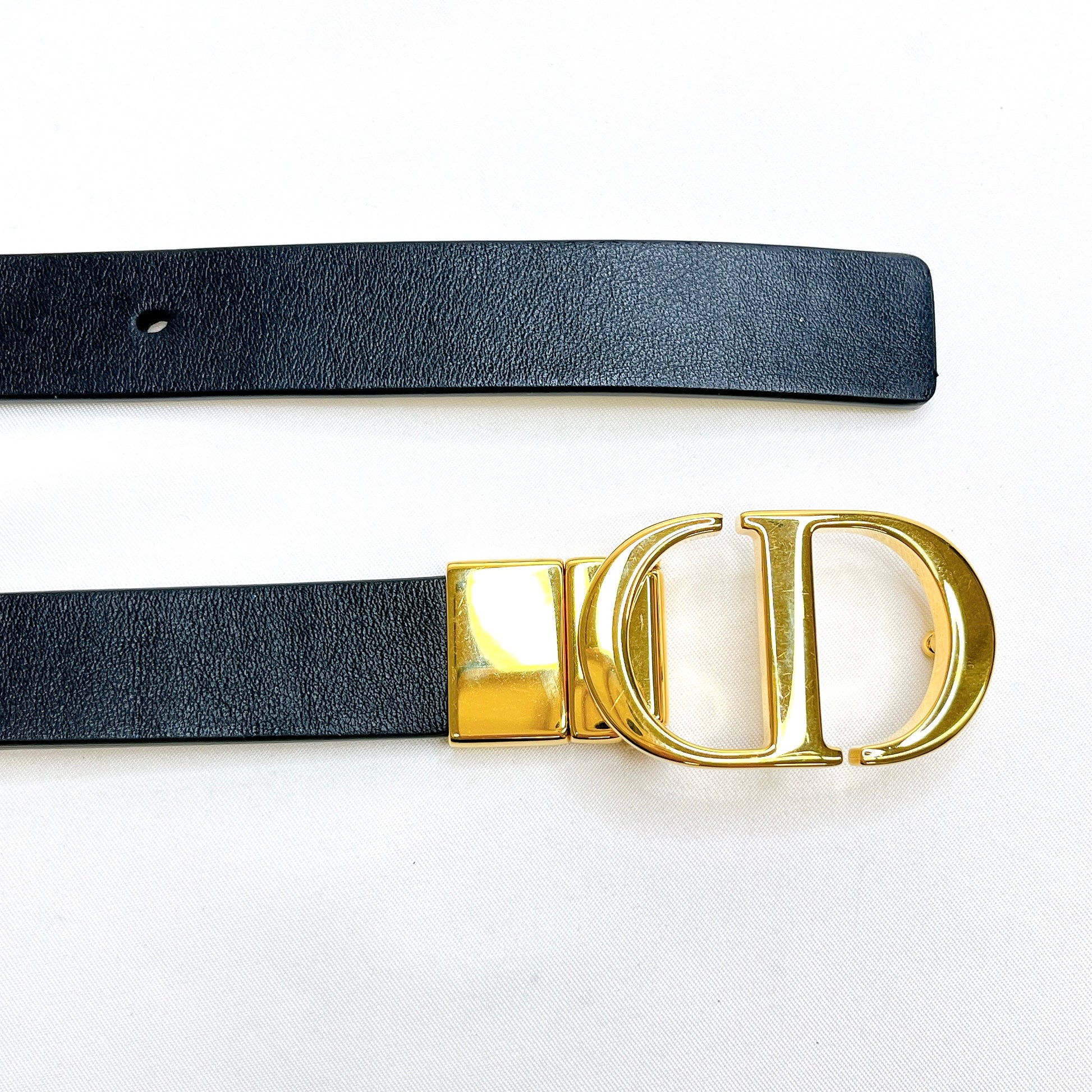 B2298 クリスチャンディオール 30 Montaigne 30モンテーニュ リバーシブル ベルト レザー ブラック