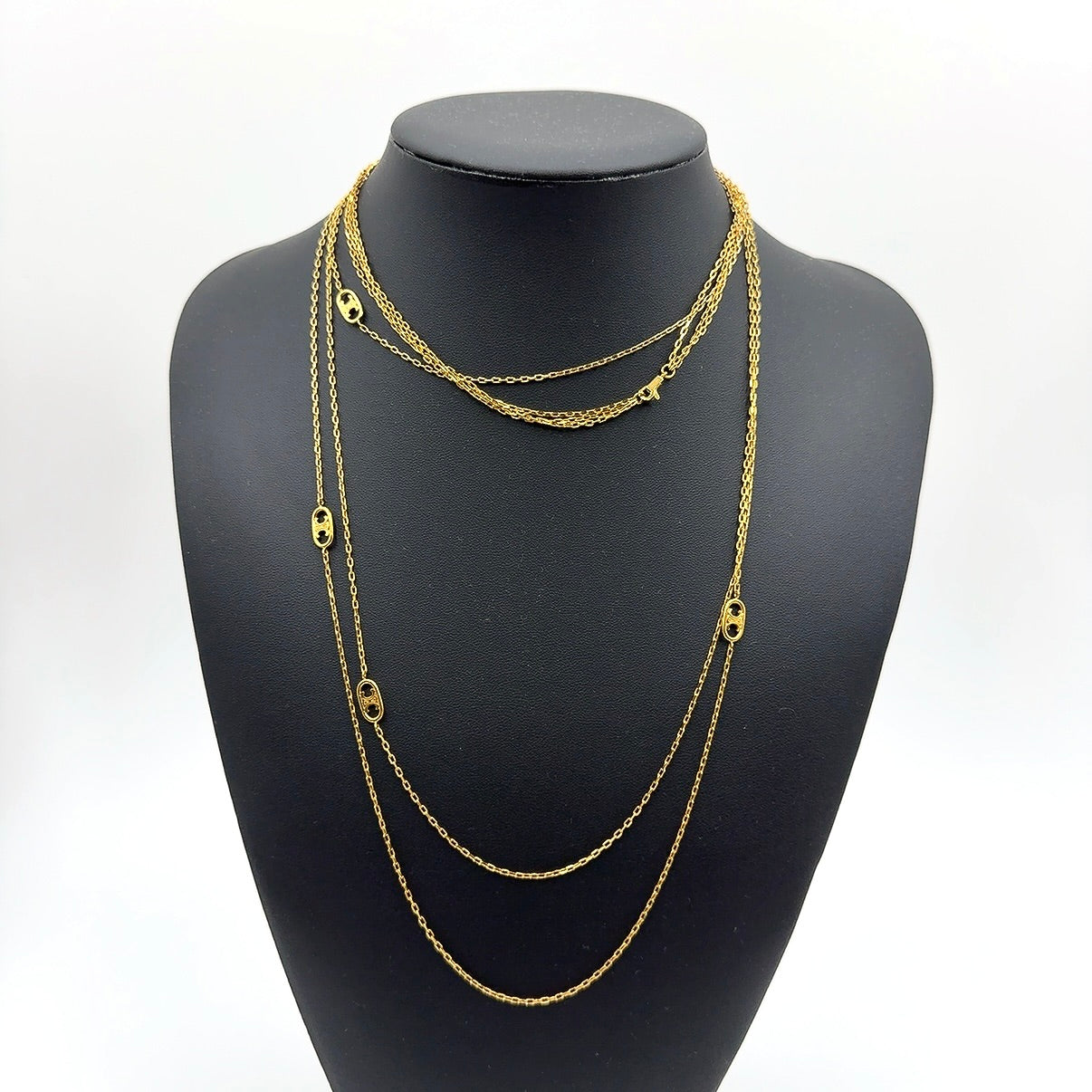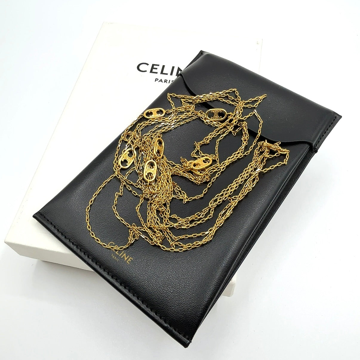 B2676 セリーヌ トリオンフ 3連チェーン ロングネックレス WCA2199