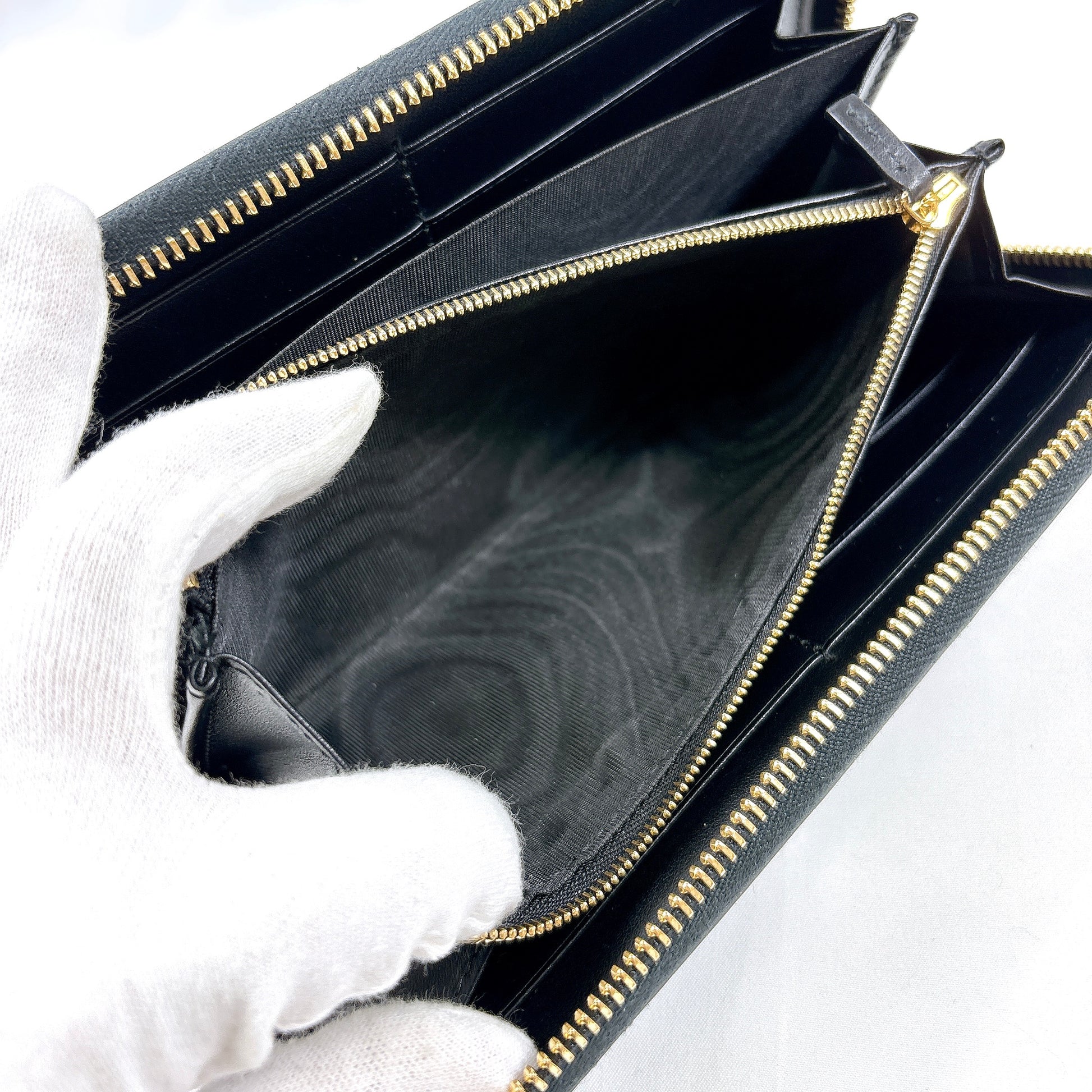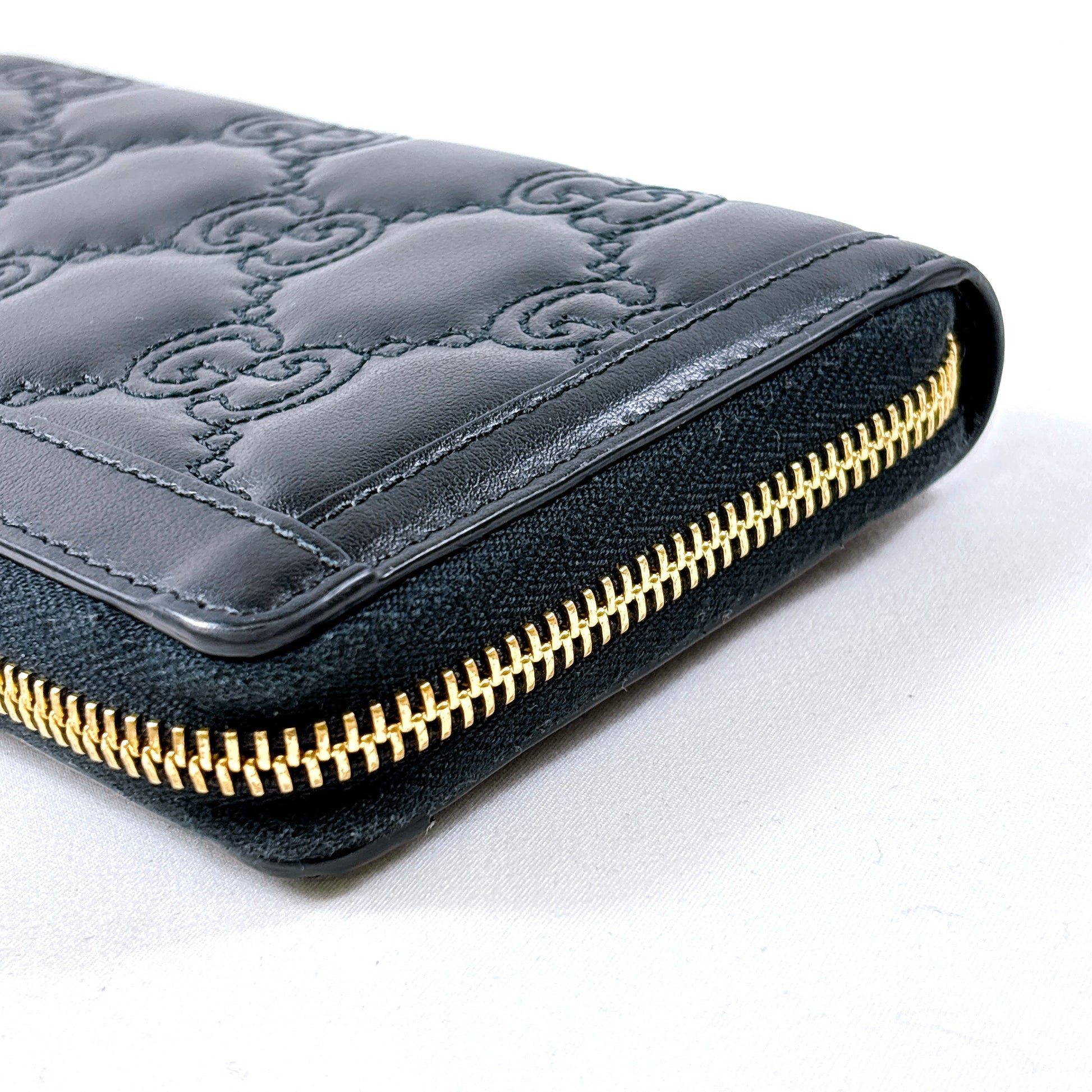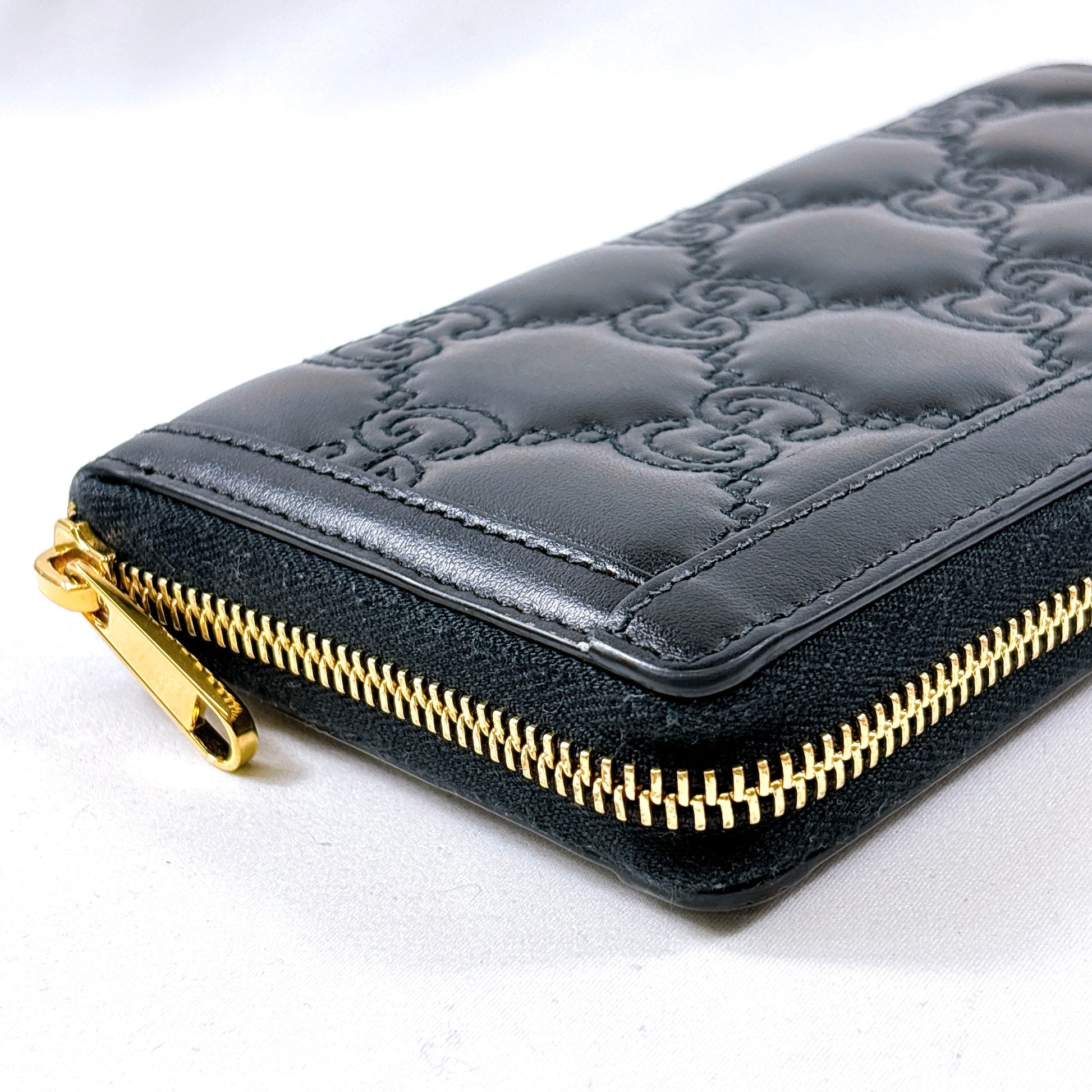 B2295 グッチ GGマトラッセ 723784 レザー ラウンドジップ 長財布 ブラック
