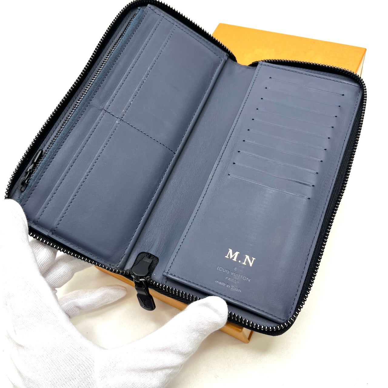 B2370 ヴィトン シャドウ ジッピーウォレットヴェルティカル M80423 ネイビー ラウンドジップウォレット   シリアル:RFID反応あり