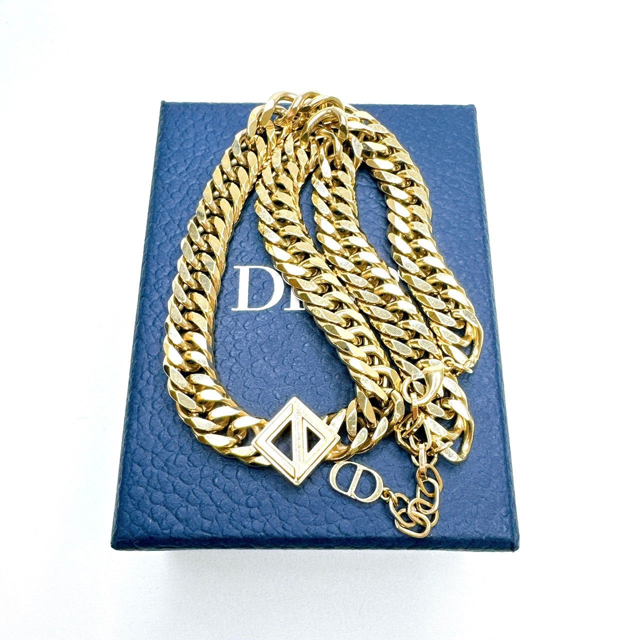 B0271 クリスチャンディオール ダイヤモンドネックレス ゴールドカラー 箱付き