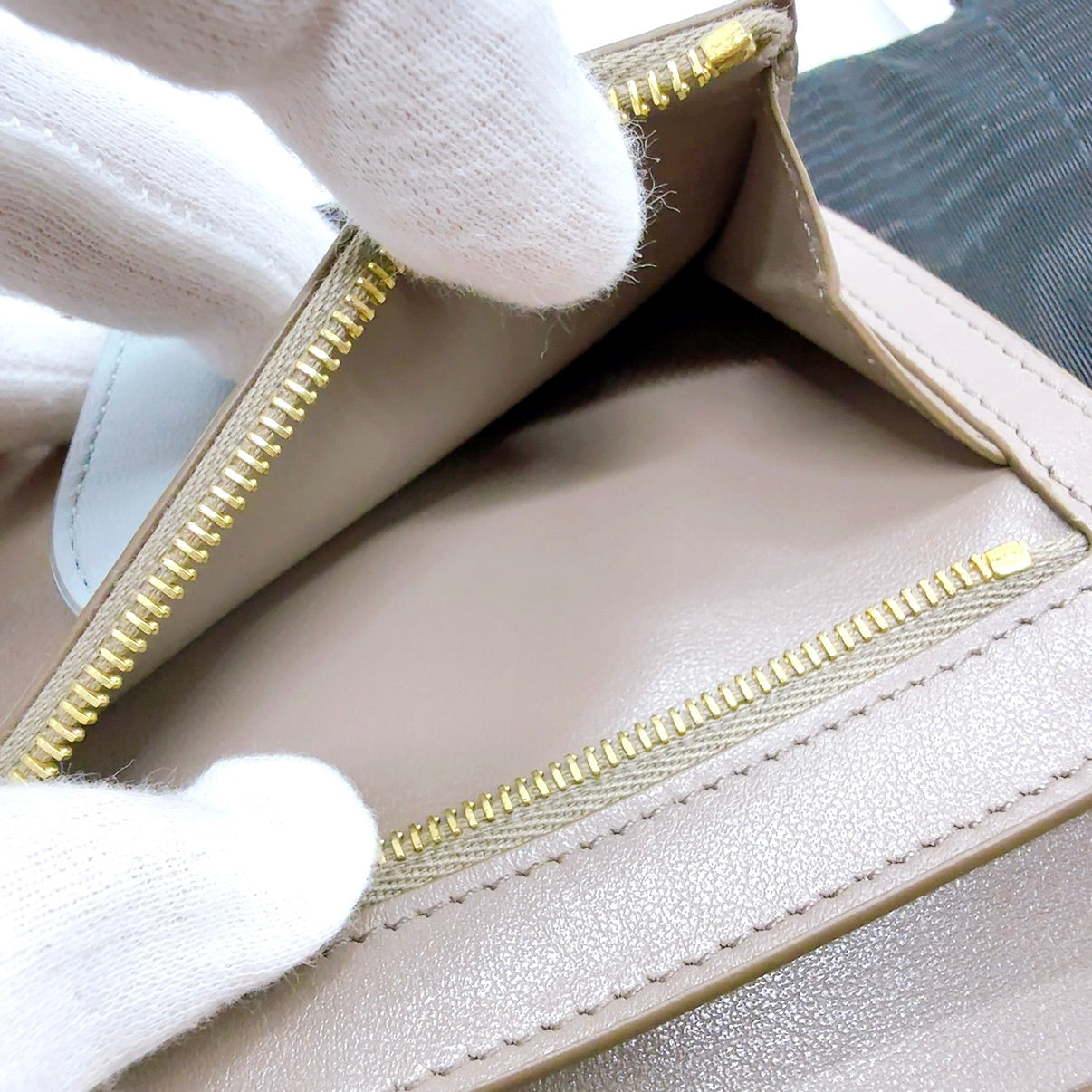 B2551 セリーヌ ミディアム ストラップウォレット 二つ折り財布 グレー シリアル:F-PB-2290