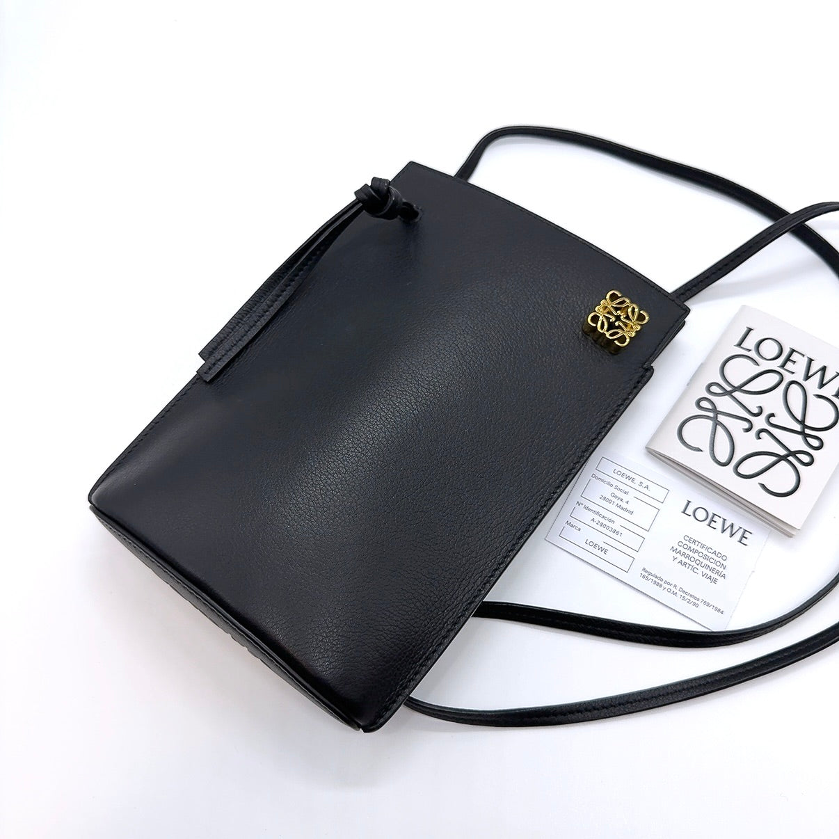B2624 ロエベ ダイスポケット アナグラム レザー ショルダーバッグ ポーチ ブラック