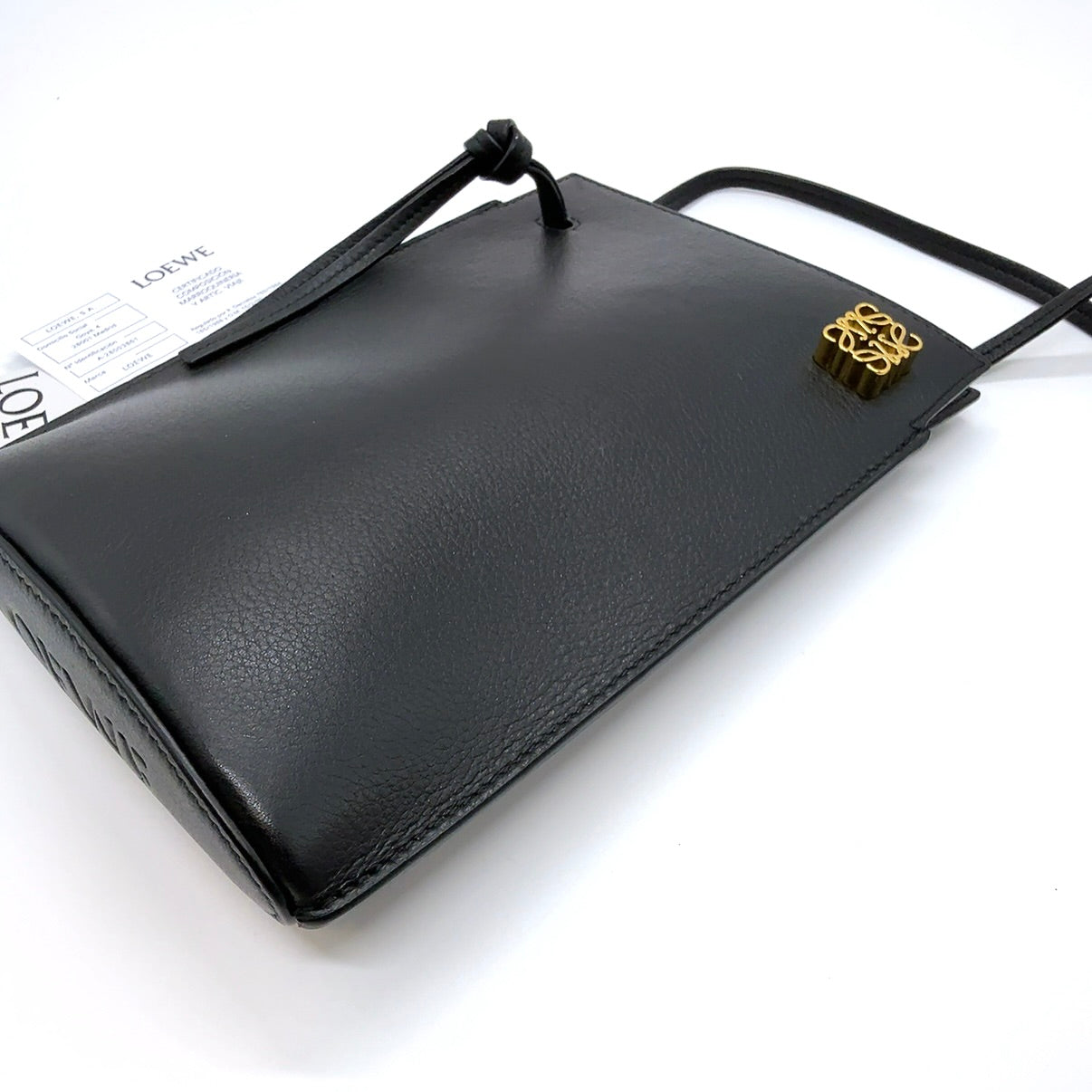 ロエベ ダイスポケット アナグラム レザー ショルダーバッグ ポーチ ブラック B2624