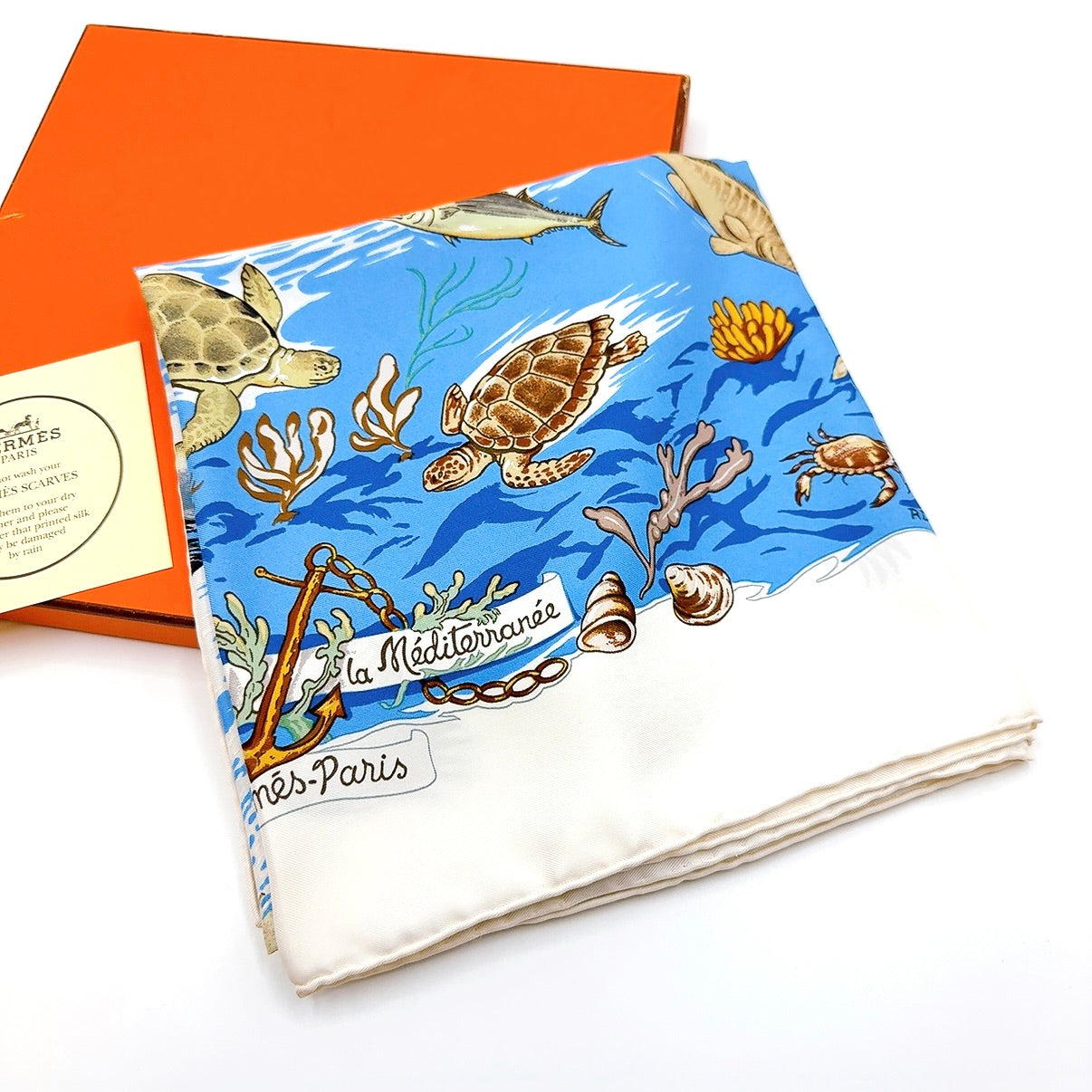B2649 エルメス カレ90 地中海の貴重な生命 シルク スカーフ