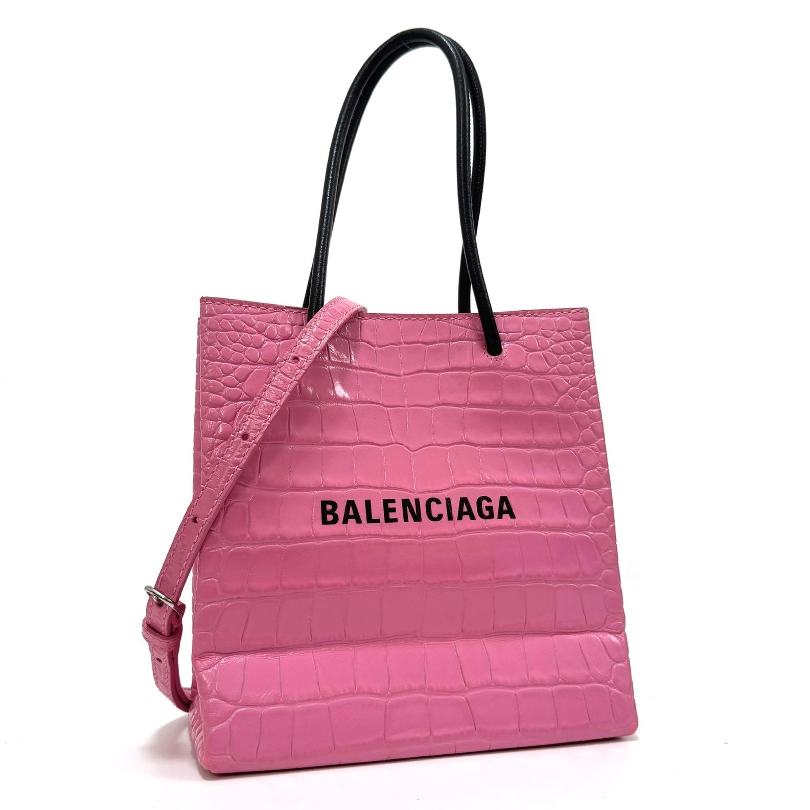 バレンシアガ クロコ型押しピンク ショッピングバッグ 2way ショルダーバッグ B2662